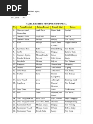 Informasi mengenai nama provinsi beserta nama bahasanya rumah adat dan tarian.
