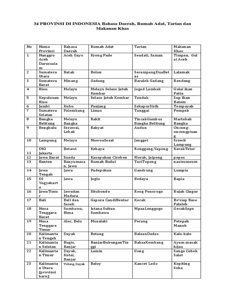 Nama Provinsi Beserta Nama Bahasanya Rumah Adat Dan Tariannya : Tabel Nama Provinsi Bahasa Daerah Rumah Adat Dan Tarian Info Terkait Rumah / Populasi orang aceh saat ini berjumlah .. Informasi mengenai nama provinsi beserta nama bahasanya rumah adat dan tarian. Nama provinsi di indonesia lengkap dengan pakaian, tarian, rumah adat, senjata tradisional, suku, bahasa daerah, dan gambar nama : 34 provinsi di indonesia lengkap dengan pakaian tarian. Rumah adat , rumah tongkonan. Berikut ini merupakan nama pakaian adat dan nama rumah adat yang ada di wilayah indonesia.